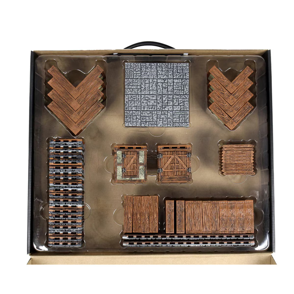 Key Features: Modular High Utility (Double-Sided) Extraordinary Definition Fantastic Value FLGS Release (No KickStarter) Works With Existing WizKids Products This set includes:* 4x - 2” Wood Full Height Straight Walls with Accessory Port 4x - 2” Wood Full Height Cracked Straight Walls with Accessory Port 2x - 2” Wood Full Height Half Window Walls 2x - 2” Wood Full Height Exterior Double Doors 2x - 2” Wood Full Height Exterior Single Doors 4x - 2” Wood Full Height Interior Walls 4x - 2” Wood Full Height Cracked Interior Walls 2x - 2” Wood Full Height Interior Single Doors 8x - 2" Full Height Corner Pillar, Wooden Beams 4x - Wood Full Height Corner Pillars 4x - Wood Full Height Inside Corner Walls 4x- Wood Full Height Outside Corner Walls 2x - 4”x 4” Stone/Wood Dual-Sided Tiles 20x - 2”x 2” Stone/Wood Dual-Sided Tiles 2x - 2”x8” Stone/Wood Dual-Sided Tiles 16x - Wood Edge Caps 90x - WarLock Clips 4x - Lanterns 4x - Mounted Swords and Shields